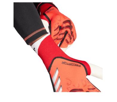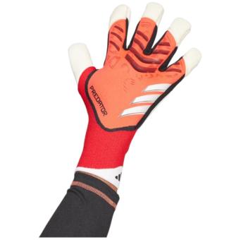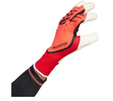 Die adidas Predator Pro Hybrid Pure Victory Torwarthandschuhe in Rot bieten eine perfekte Mischung aus Leistung und Komfort für professionelle Torhüter. Sie verfügen über eine Ultimate Grip Latex-Oberfläche, die für exzellenten Grip bei allen Wetterbedingungen sorgt, sowie die DemonSkin-Technologie, die mit 404 stachelartigen Strukturpunkten zusätzlichen Grip und Kontrolle bietet. Der Hybrid Cut sorgt für eine enge, passgenaue Passform, während der Fingerschutz das Risiko von Verletzungen minimiert. Mit einer flexiblen Handflächenstruktur und einem stabilen, aber beweglichen Sitz unterstützen die Handschuhe schnelle Reaktionen und präzise Paraden. Zudem sorgt das Stretch-Material an der Innenhand für zusätzlichen Komfort. Diese Handschuhe sind ideal für Torhüter, die auf höchstem Niveau spielen und maximalen Schutz sowie herausragende Leistung suchen. Das auffällige rote Design rundet das Gesamtbild ab.