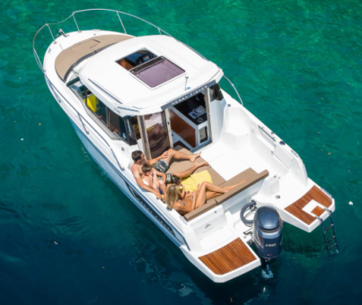 The Jeanneau Merry Fisher 795 is a 7.9m pilothouse boat, ideal for day and weekend cruises. It offers a comfortable cabin, small kitchen, bathroom and flexible seating areas in the cockpit, which can also be used as a sun lounger. Thanks to its good seaworthiness, stable construction and easy handling, it is particularly suitable for beginners. Equipped with an outboard engine up to 250 hp, it reaches high speeds. The new price is around €90,000. https://www.jeanneau.com/it/boats/powerboat/9-merry-fisher/27-merry-fisher-795